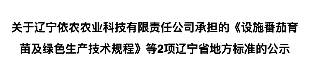 根據遼寧省地方標準管理辦法(遼農監(jiān)[2017]34號)要求,現將遼寧依農農業(yè)科技有限責任公司和遼寧省農業(yè)科學院共同承擔的《設施黃瓜育苗及綠色生產技術規(guī)程》征求意見稿和《設施番茄育苗及綠色生產技術規(guī)程》等2項遼寧省地方標準進行公示,并面向社會征求意見.